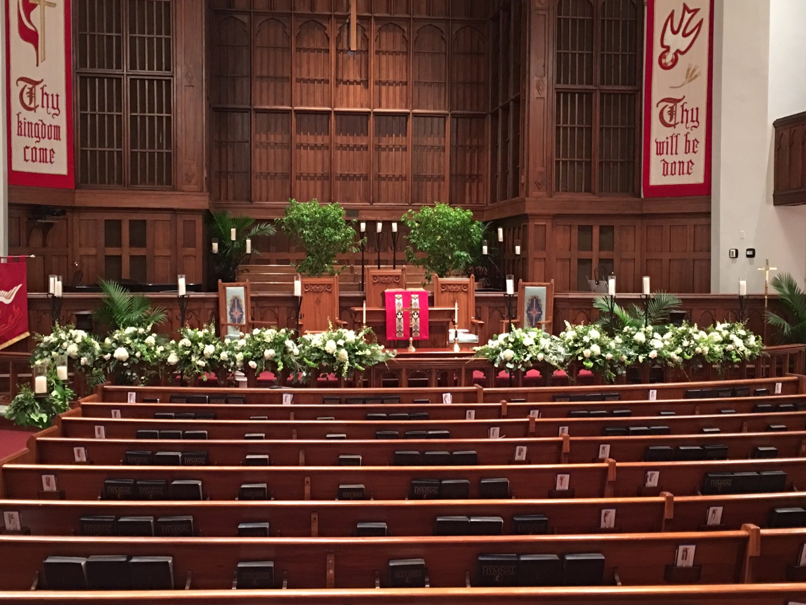 Alter Rail floral garland at First Presbyterian